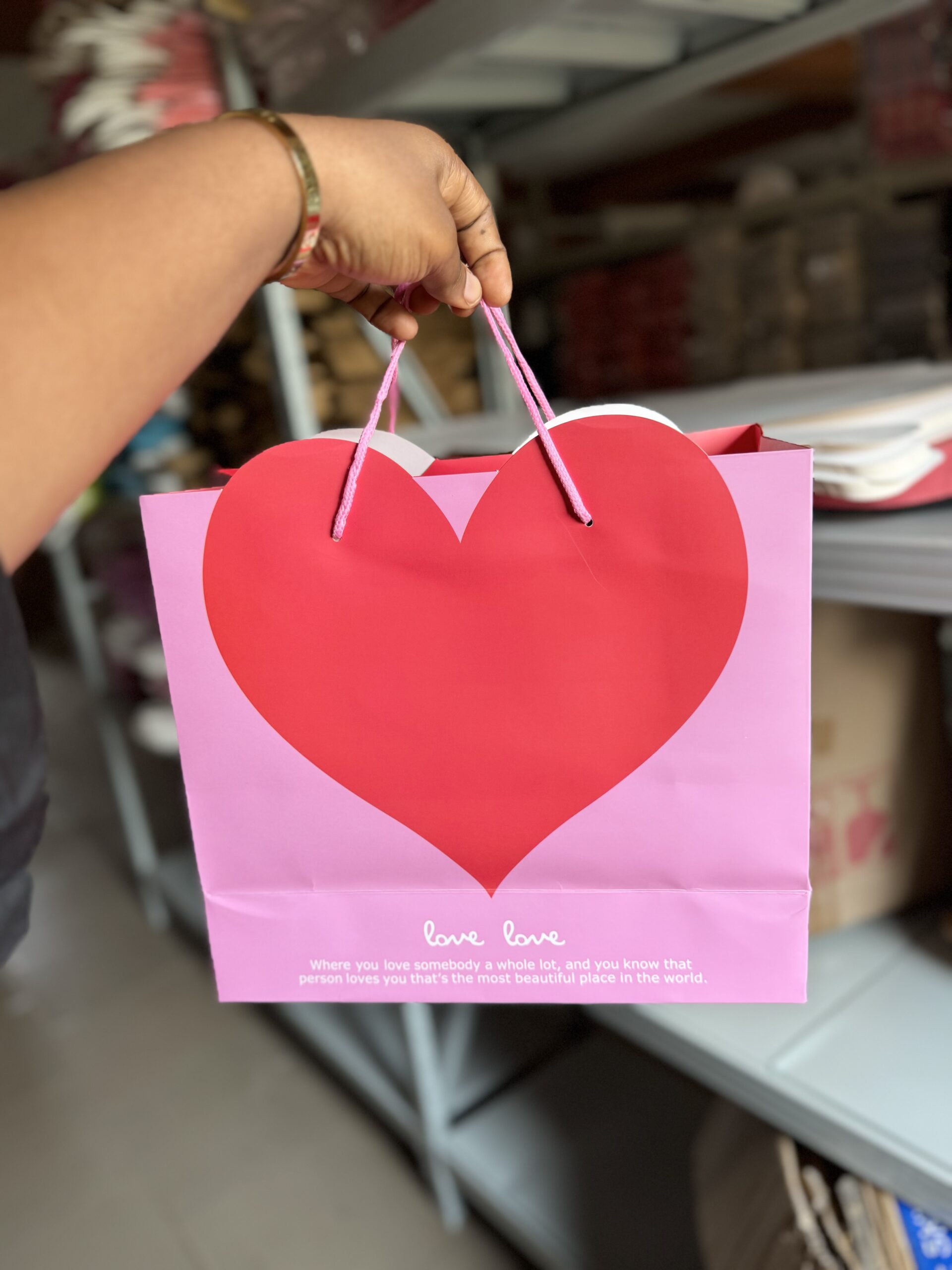 Valentine pink & red heart paper bag